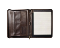 zippered closure  |  two paper storage pockets   |  zipper storage pocket   |  clear id window   |  card pocket   |  pen holder   |  ruled letter paper