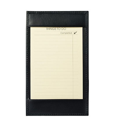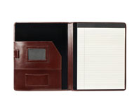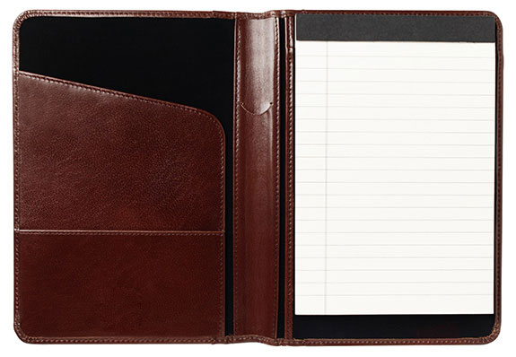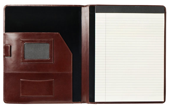 paper storage pocket | pen holder | clear id window | card pocket | lined letter pad slim fold over style
