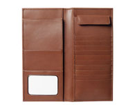 zippered closure | clear id window | pockets for passport, ticket, and travel documents | zippered currency pocket | 10 card slots | removable traveler’s check holder